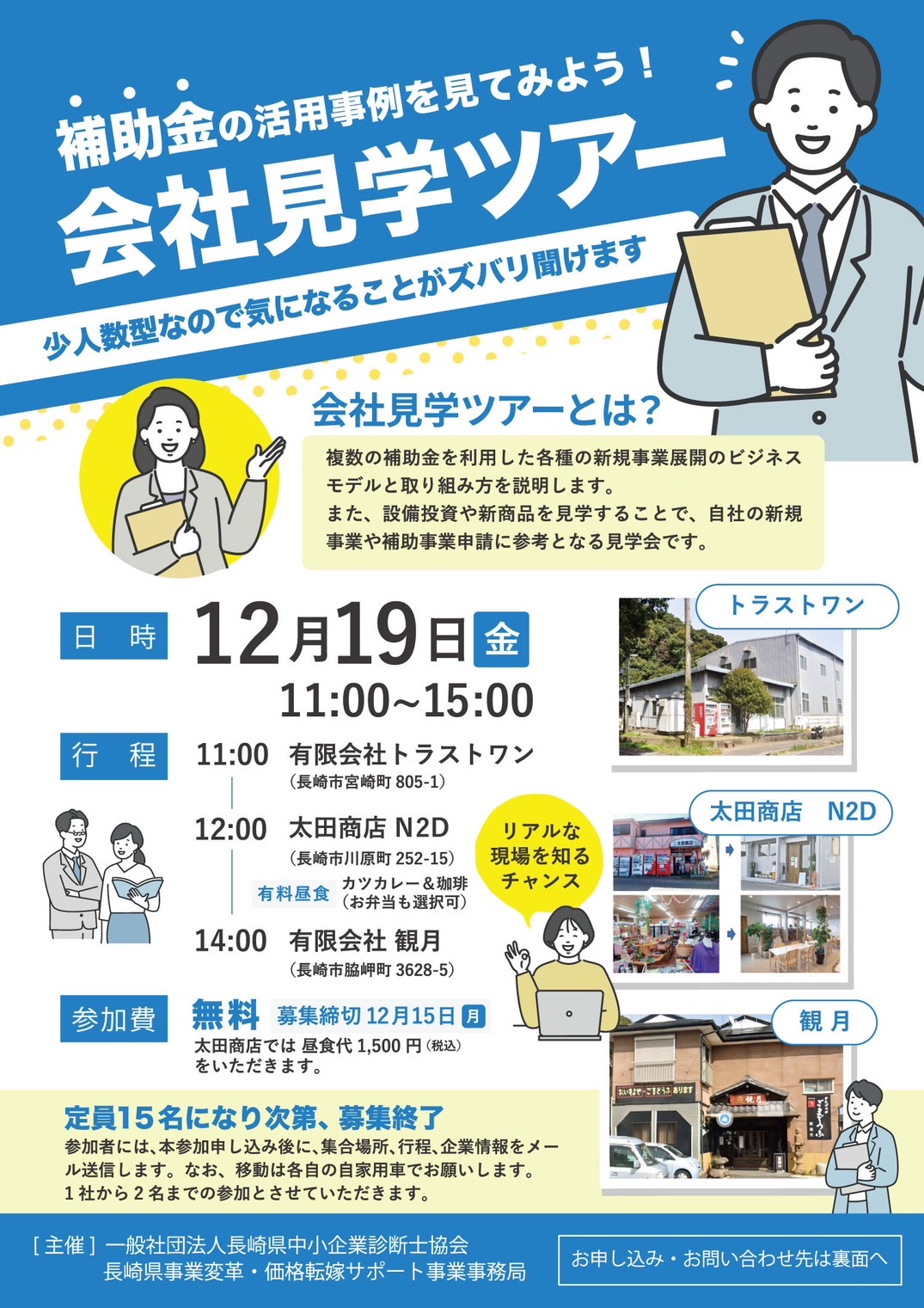 工場見学ツアー「補助金の活用事例を見てみよう!」開催のお知らせ。